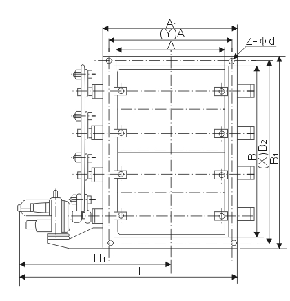 電動矩形百葉式調(diào)節(jié)蝶閥主要外形連接尺寸